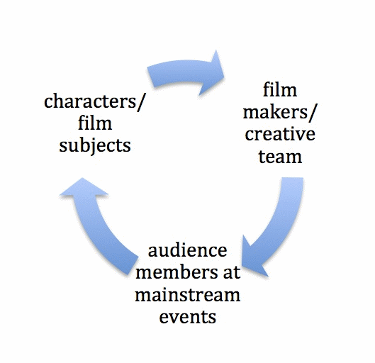 International film festivals are privileged sites for cultural exchange and creative incubation to which blind persons are effectively excluded, a barrier that needs addressing. By recognizing barriers to film festivals, we instigate a solution to making film culture more accessible to blind persons. Using the film Blindsight as an exemplar along with a study conducted on film festivals, this paper argues a triadic thesis: that the issues of blind audience members at film festivals, blind subjects in films, and blind filmmakers must be viewed together in order to attend to cultural inclusion. We situate the paper in the domain of autobiography theory and specifically draw upon G. Thomas Couser’s work Signifying Bodies for a model. Couser attends to self-representation thereby enabling us to focalize the research on agency at various subject positions in the acts of participating in film culture.